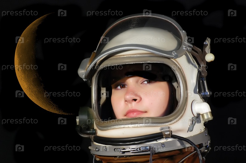 Девушка в шлеме космонавта