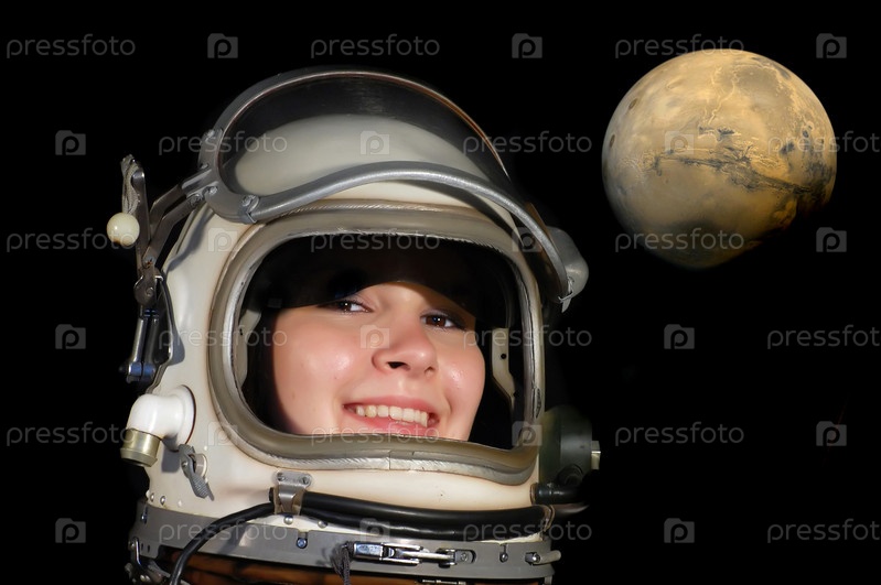 Девушка в шлеме космонавта