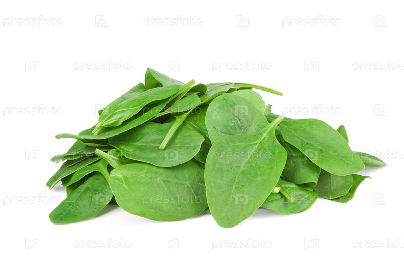 Листья свежего шпината на белом фоне