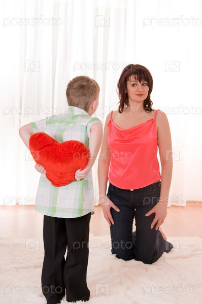 Мальчик дарит матери подарок