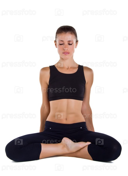 Молодая красивая женщина практикует йогу, не изолированном белом фоне