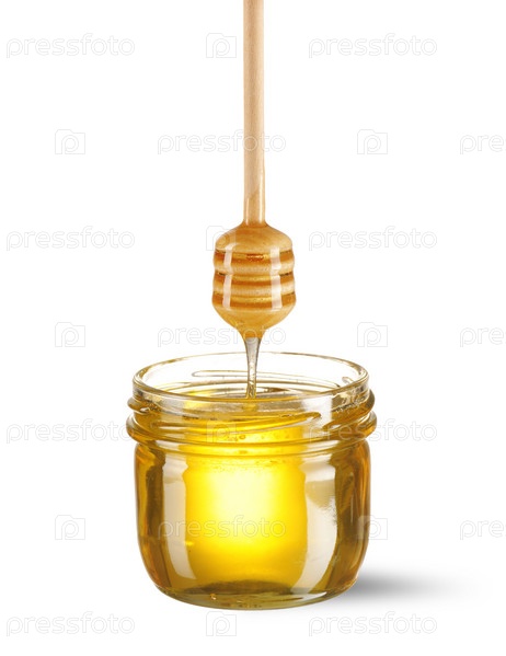 Банка с медом на белом фоне