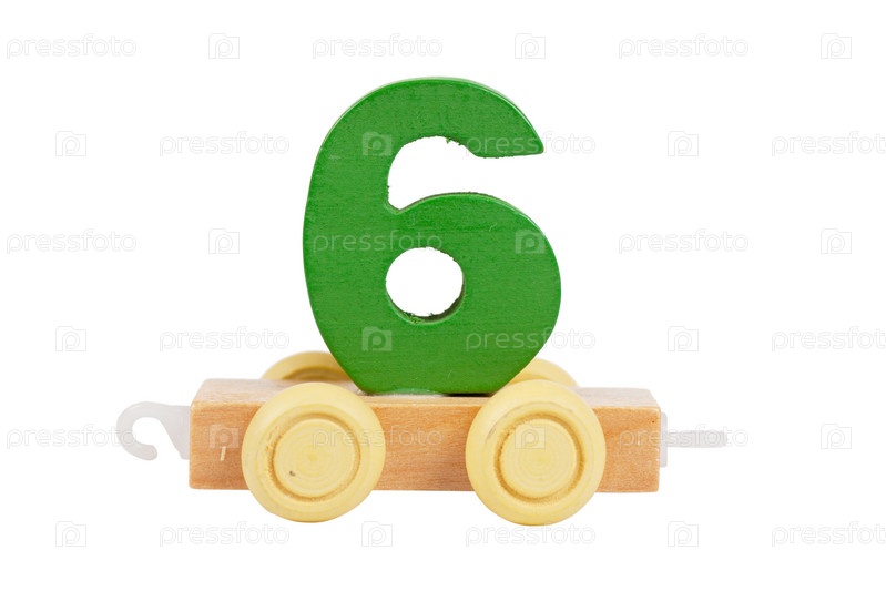 Деревянная игрушка на колесах с номером 6 на белом