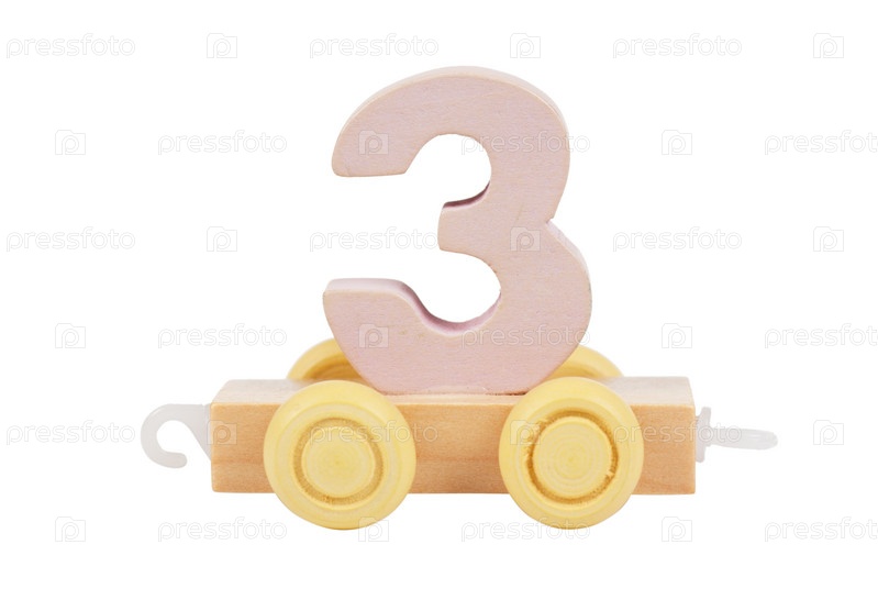 Деревянная игрушка на колесах с номером 3 на белом