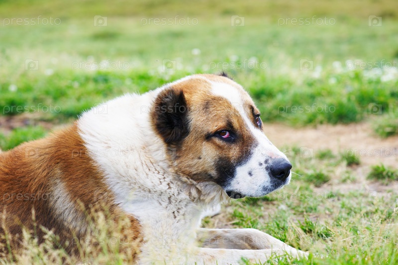 Большая собака на траве