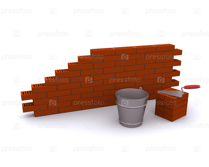 Кирпичи, ведро и шпатель