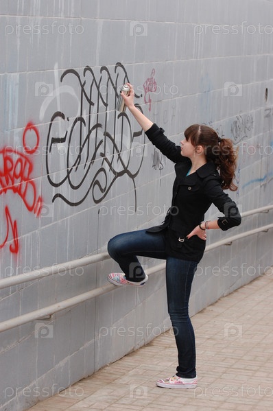 Девушка рисует на стене