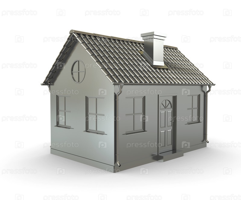 Металлический дом на белом фоне