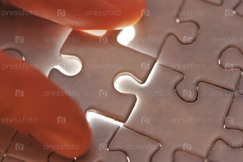 Рука складывает пазлы