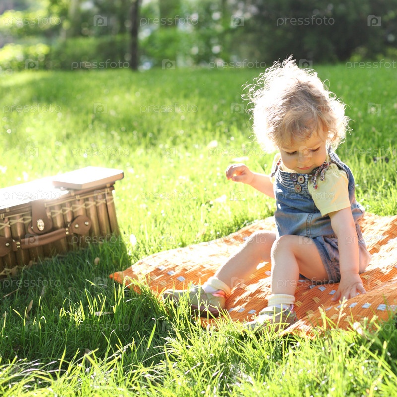Маленький ребенок на пикнике в летнем парке