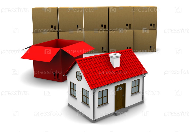 Дом и несколько картонных коробок на белом фоне