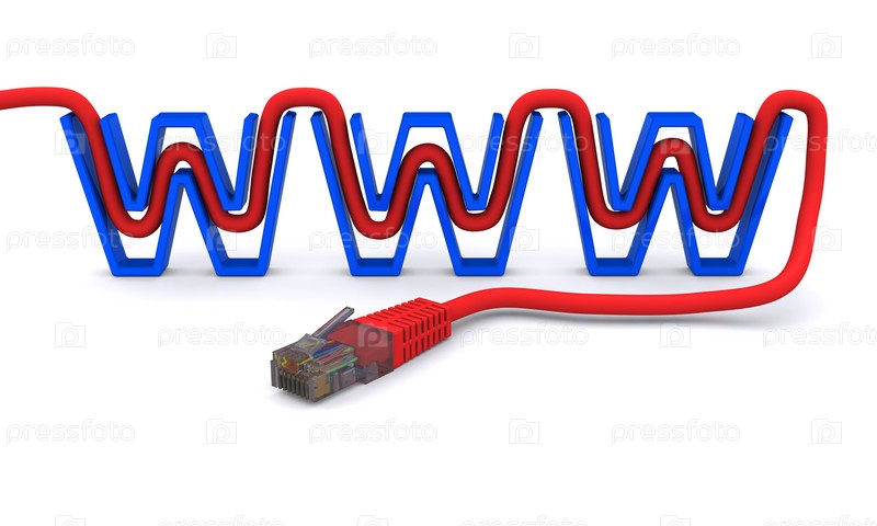 Красный интернет-кабель, проходящий через синие буквы WWW на белом фоне