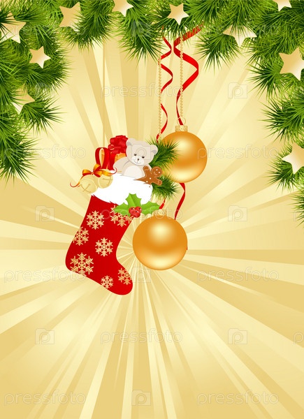 Рождественский золотой фон с декорациями. Векторные иллюстрации