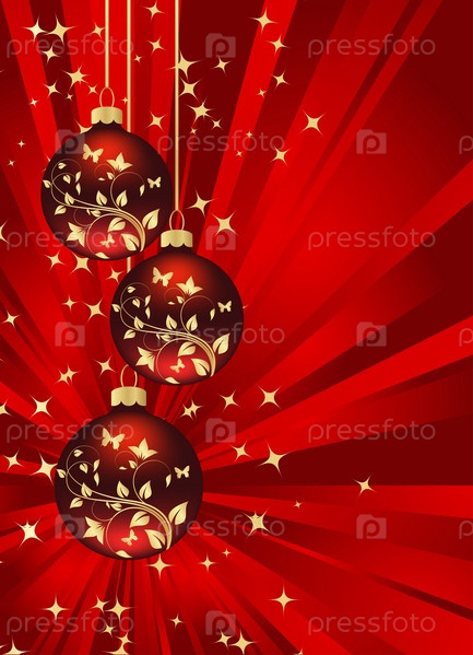 Красный фон с рождественскими украшениями. Векторные иллюстрации