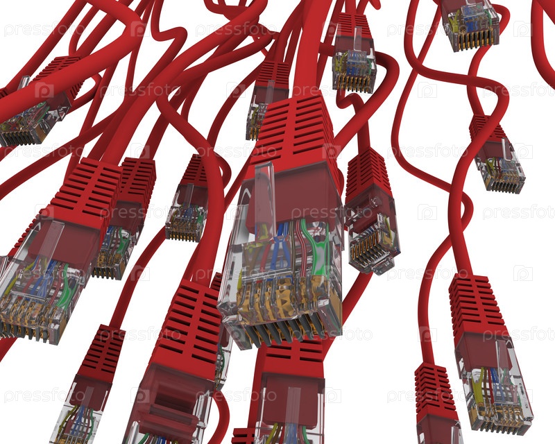 Много интернет-кабелей на белом фоне