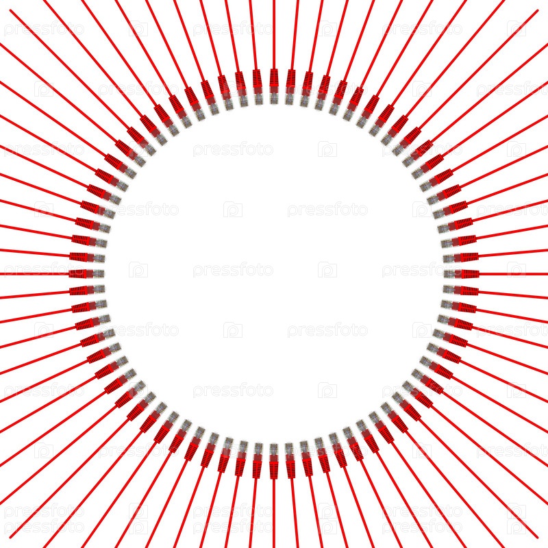 Круглая рамка из сетевых кабелей на белом фоне