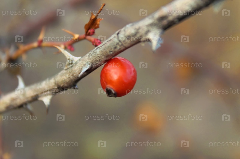 Ветка шиповника с одной ягодкой