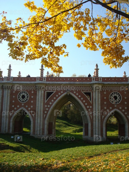 Сооружение с арками в восточном стиле в осеннем парке