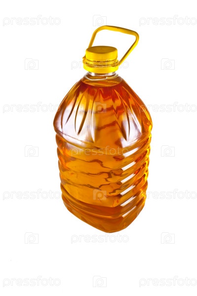 Большая бутылка подсолнечного масла на белом фоне