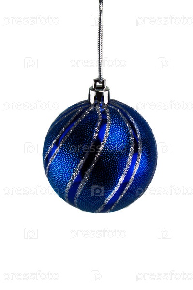 Новогодний синий шар с орнаментом на белом фоне