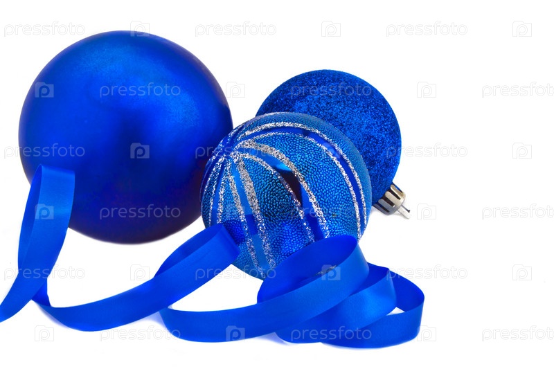 Новогодние синие шары на белом фоне