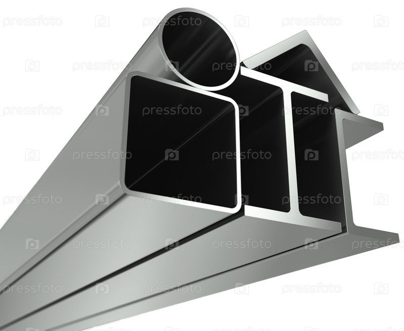 Металлическая труба, балка, уголок, шпунт и квадратная труба на белом фоне