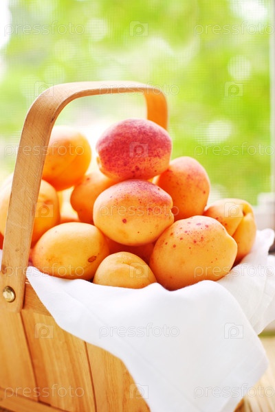 Спелые абрикосы в деревянной корзине