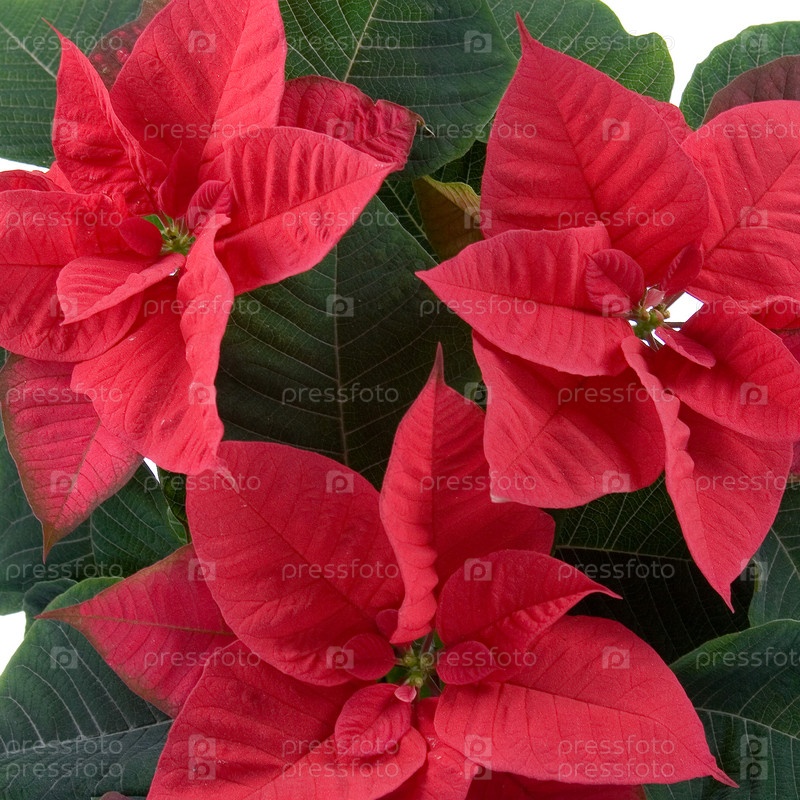 Красные цветы пуансеттия или рождественская звезда на белом фоне