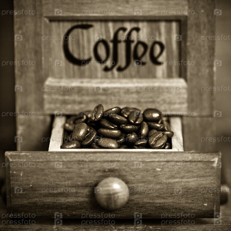 Старинная деревянная мельница для кофе
