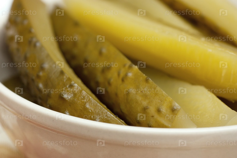 Нарезанный маринованный огурец в чаше