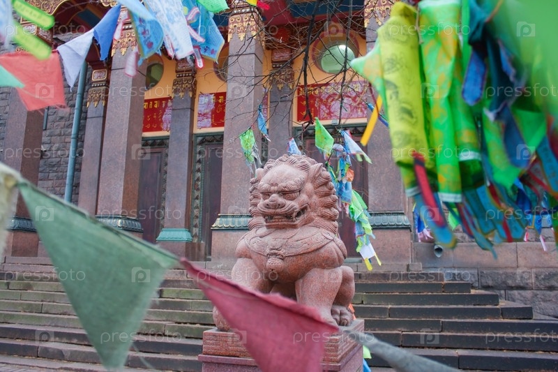 Скульптура льва у буддийского храма, Санкт-Петербург, Россия