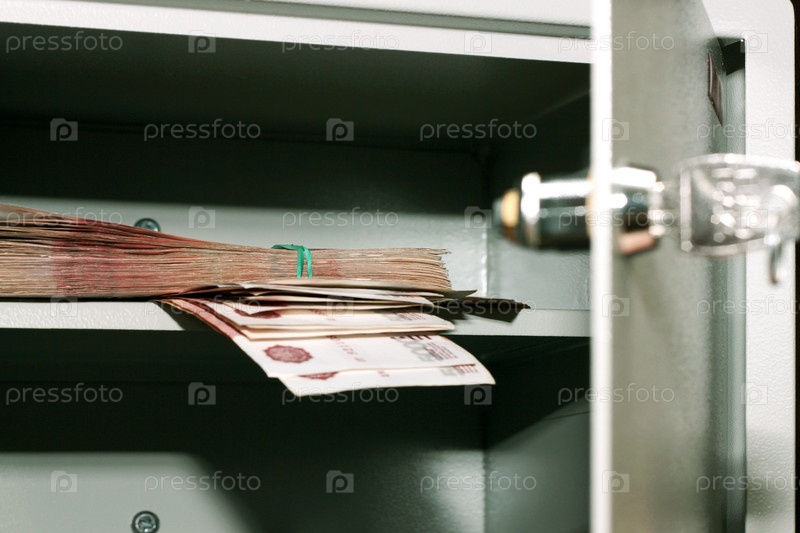Стопка пятитысячных купюр в сейфе