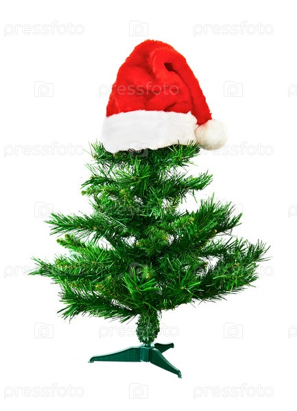 Шапочка Санта Клауса на искусственной елке