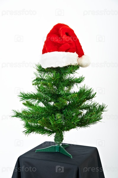 Шапочка Санта Клауса на искусственной елке