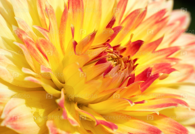 Красно-желтый цветок георгина крупным планом