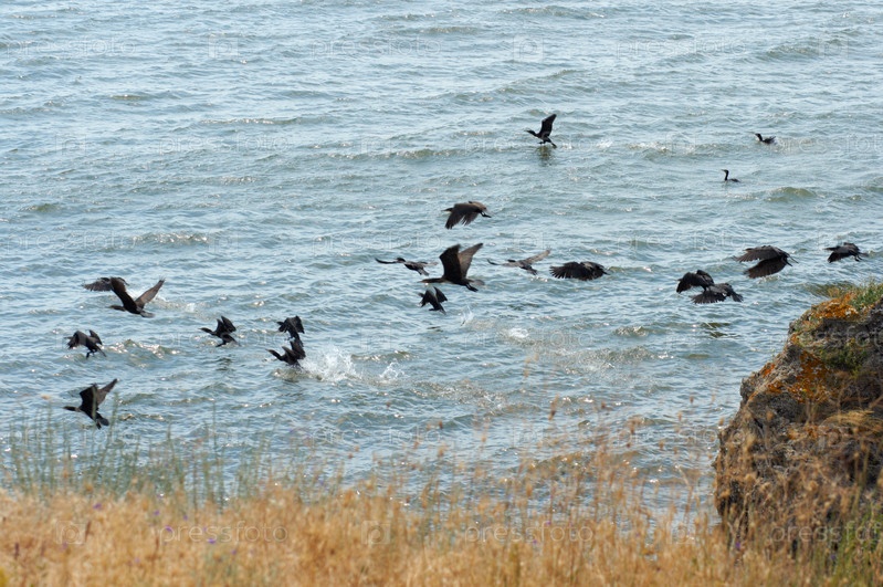 Бакланы на мысе Казантип, Крым, Украина