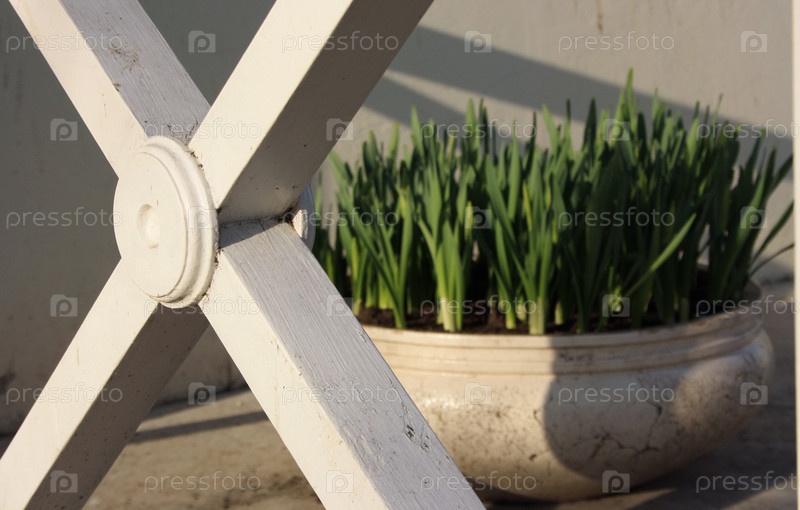 Клумба с травой за забором