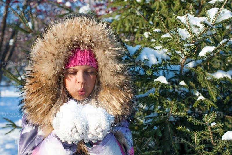 Портрет молодой девушки-подростка в зимней одежде возле елочки