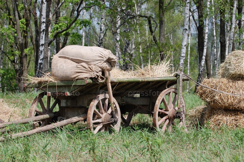 Телега с сеном в лесу