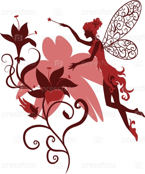 Силуэт феи, изолированный на белом фоне с цветами