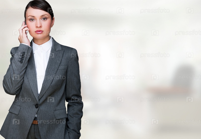 Деловая женщина с телефоном в руках на размытом фоне