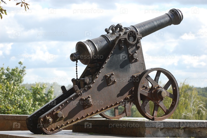 Старинная пушка на постаменте в городе Чернигов