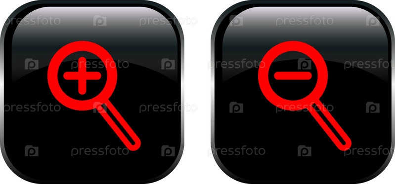 Две черные кнопки с красными значками луп для приближения и удаления изображений