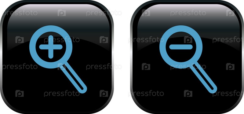 Две черные кнопки с голубыми значками луп для приближения и удаления изображений