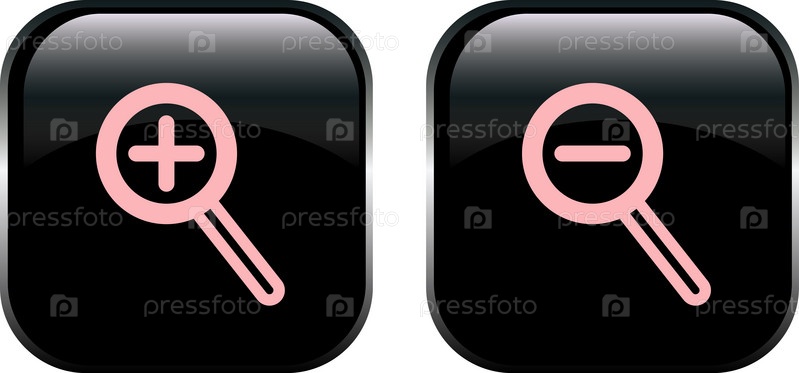 Две черные кнопки с розовыми значками луп для приближения и удаления изображений