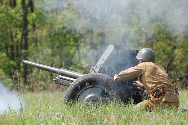 Солдат ведет огонь из пушки