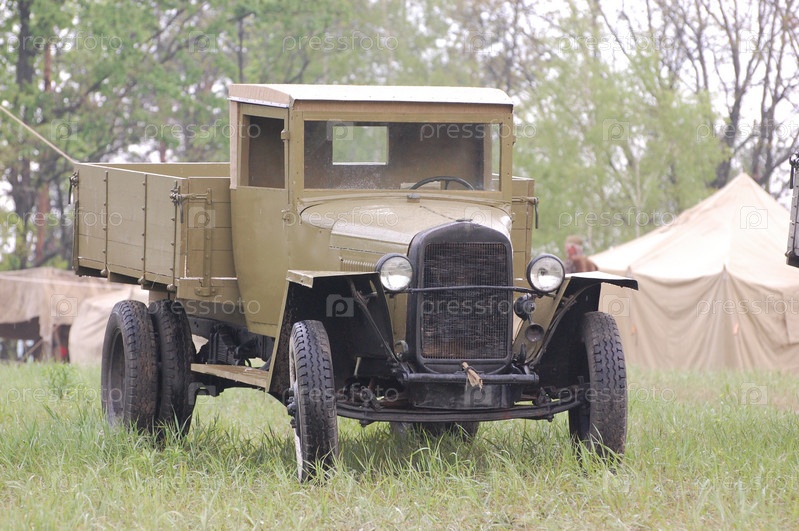 Грузовой автомобиль времен второй мировой войны около полевого лагеря