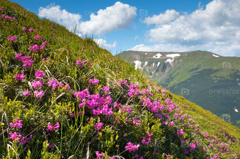Розовый рододендрон в горах