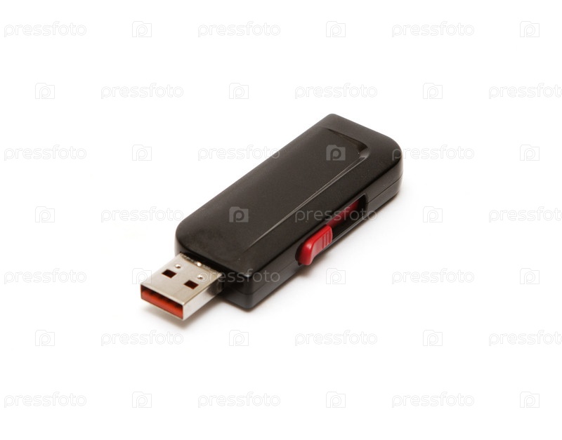 Черный флеш-накопитель USB на белом фоне