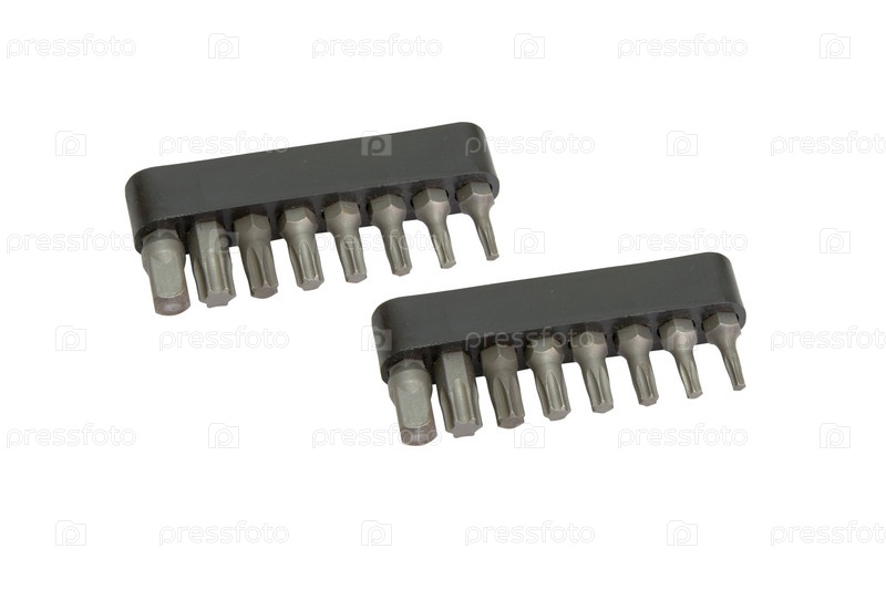 Набор насадок для отвертки на белом фоне